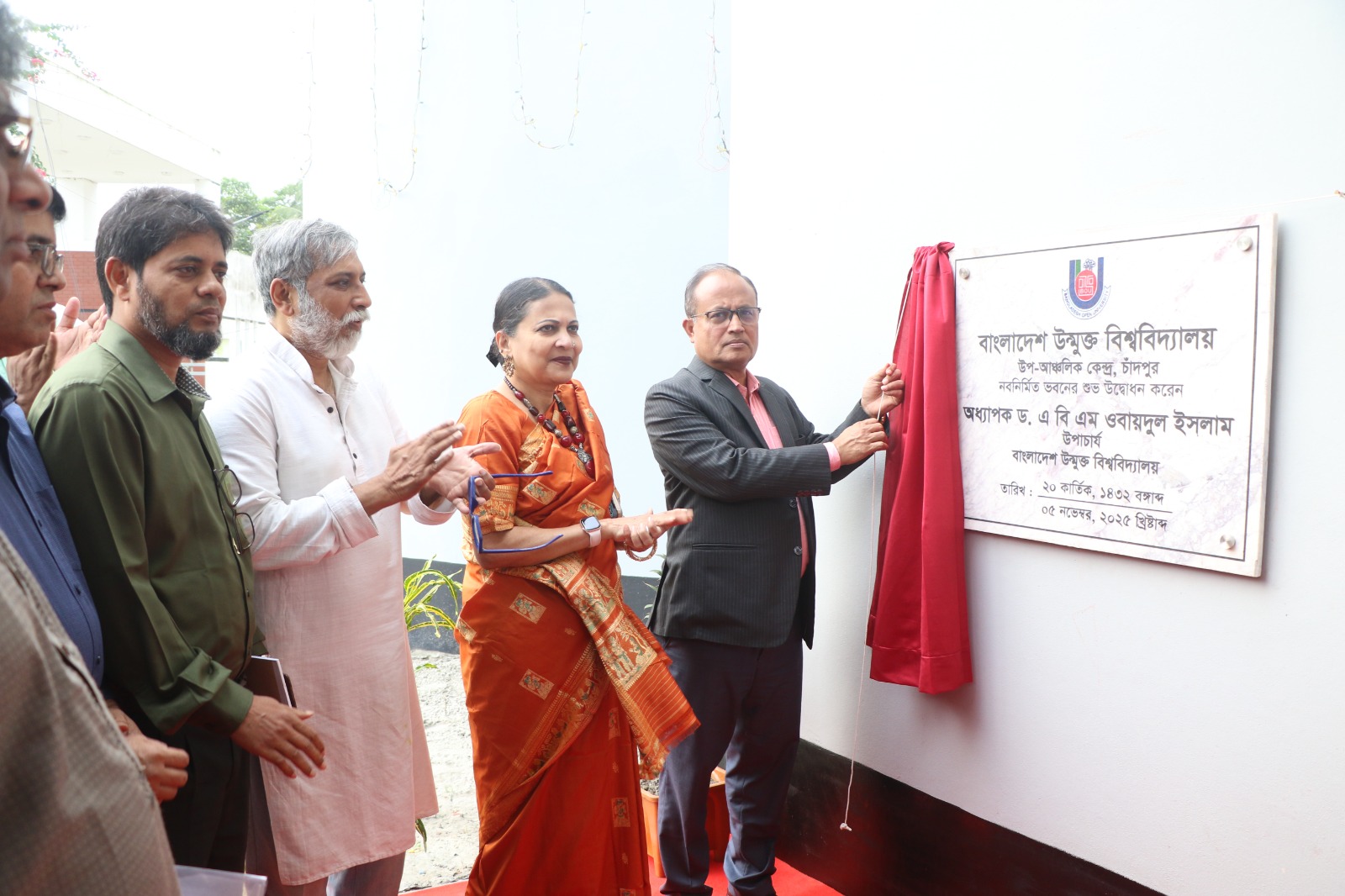 বাংলাদেশ উন্মুক্ত বিশ্ববিদ্যালয়ের (বাউবি) একাডেমিক কার্যক্রমকে আরও গতিশীল ও সুসংগঠিত করার লক্ষ্যে চাঁদপুর উপ-আঞ্চলিক কেন্দ্রে নবনির্মিত অফিস ভবনের উদ্বোধন অনুষ্ঠিত হয়। ০৫ নভেম্বর ২০২৫ বুধবার বিকেল ৩টায় চাঁদপুর উপ-আঞ্চলিক কেন্দ্রের নিজস্ব ক্যাম্পাসে (সেনগাঁও, আশিকাটি, চাঁদপুর) আয়োজিত অনুষ্ঠানে প্রধান অতিথি হিসেবে উপস্থিত থেকে ভবনের শুভ উদ্বোধন ঘোষণা করেন বাউবির মাননীয় উপাচার্য অধ্যাপক ড. এ বি এম ওবায়দুল ইসলাম। প্রথমেই উপাচার্য লাল রঙের ফিতা কেটে এবং নবনির্মিত উপ-আঞ্চলিক কেন্দ্র ভবনের দেয়ালে স্থাপিত ফলক উন্মোচন করে অফিস ভবনের শুভ উদ্বোধন করেন। প্রধান অতিথির বক্তব্যে উপাচার্য বলেন, “বাংলাদেশ উন্মুক্ত বিশ্ববিদ্যালয় দেশের প্রান্তিক জনগোষ্ঠীর দোরগোড়ায় শিক্ষা পৌঁছে দিতে নিরলসভাবে কাজ করছে। এ ধরণের উপ-আঞ্চলিক কেন্দ্রসমূহ বিশ্ববিদ্যালয়ের একাডেমিক ও প্রশাসনিক কার্যক্রমকে আরও গতিশীল করবে এবং শিক্ষার্থীদের সঙ্গে বিশ্ববিদ্যালয়ের যোগাযোগকে সহজতর করবে। চাঁদপুর উপ-আঞ্চলিক কেন্দ্রের নিজস্ব ভবন প্রতিষ্ঠা স্থানীয়ভাবে শিক্ষা বিস্তারের নতুন দিগন্ত উন্মোচন করবে।” উপাচার্য বলেন, এখন থেকে বাউবির এম.এ কোর্স সম্পূর্ণ অনলাইনে পরিচালিত হচ্ছে। শিক্ষার্থীদের আর কোনো স্টাডি সেন্টারে গিয়ে ক্লাস করতে হবে না। ঘরে বসেই মোবাইল অ্যাপস ব্যবহার করে শিক্ষার্থীরা পাঠগ্রহণ করতে পারবেন। এছাড়াও তিনি আরো বলেন, "শিক্ষা সহজলভ্য করার পাশাপাশি মানসম্পন্ন শিক্ষার নিশ্চয়তা দিতে বাউবি প্রতিশ্রুতিবদ্ধ। উন্মুক্ত শিক্ষা মানে নকলের সুযোগ নয়; বরং সবার কাছে জ্ঞানের আলো পৌঁছে দেওয়াই বাউবির লক্ষ্য। তিনি আরও জানান, বর্তমানে ৬৭টি প্রোগ্রাম চালু আছে এবং দক্ষতা বৃদ্ধিমূলক নতুন নতুন কোর্সও চালু করা হচ্ছে, যাতে দেশের জনগণ প্রকৃত অর্থে শিক্ষিত ও দক্ষ জনশক্তিতে পরিণত হতে পারে।